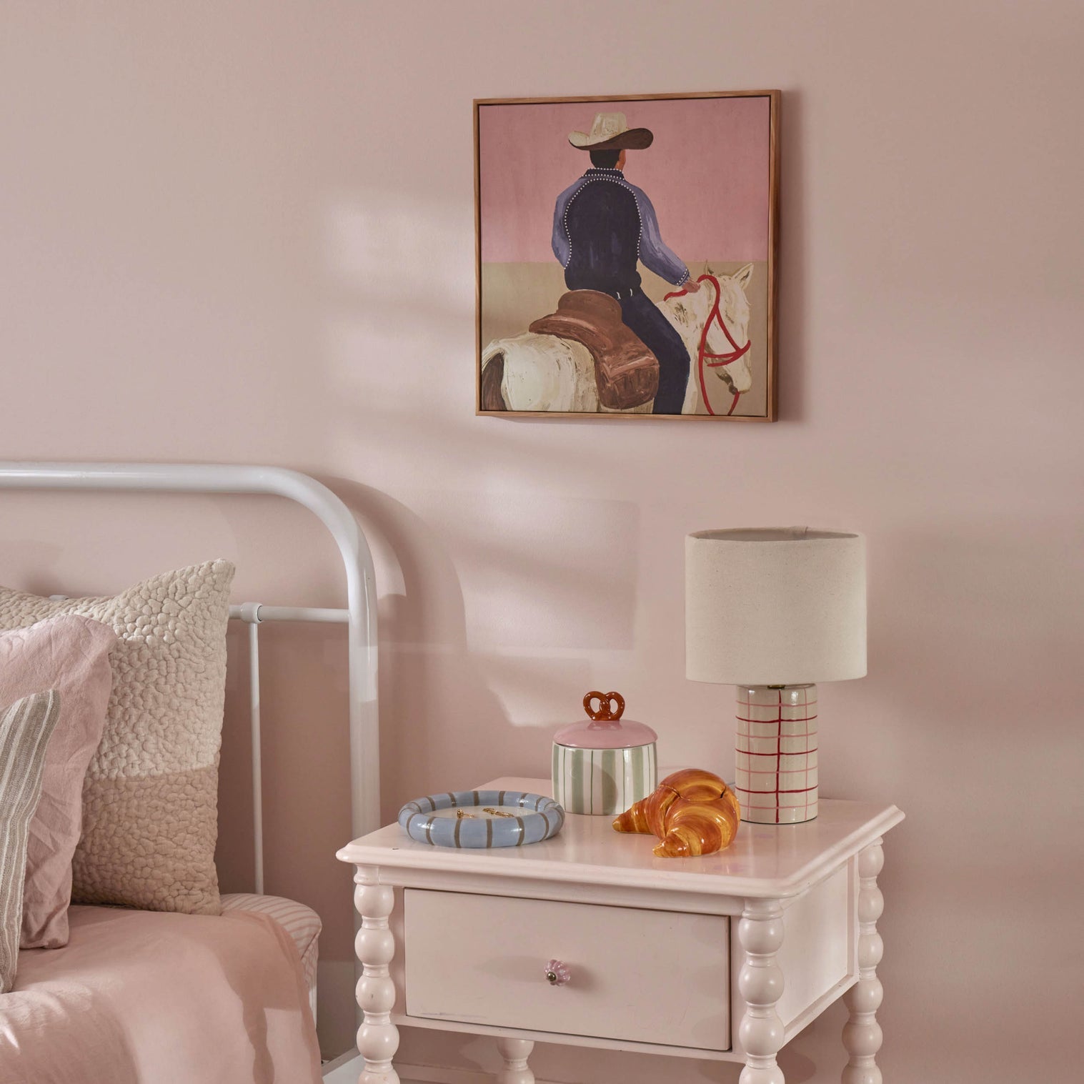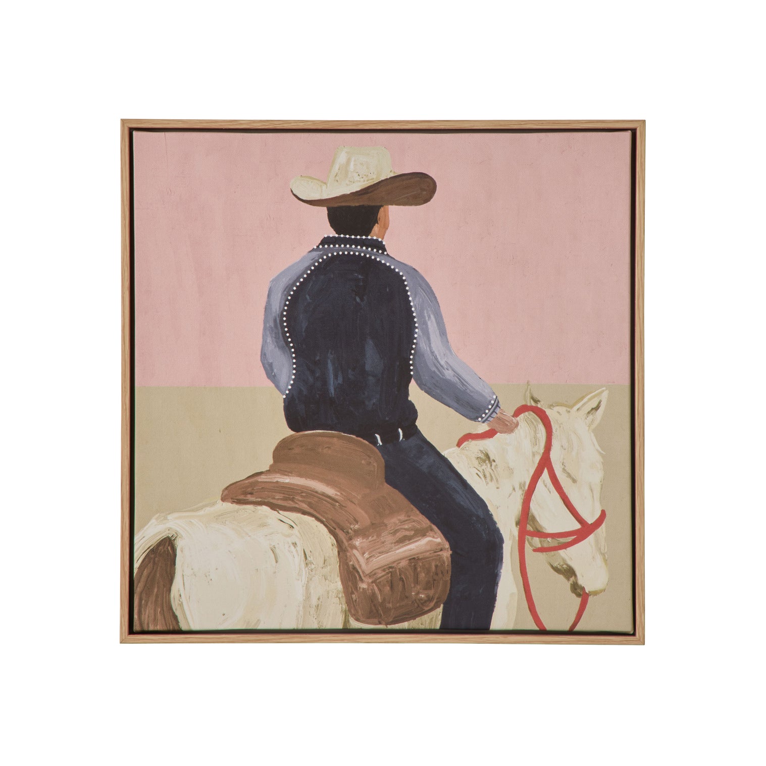 Find yourself in the Lone Rider Wall Art by Amalfi. Giving old school western design a modern update, this trend-led print is set upon a light pink and beige canvas that brings a pop of colour to every interior. Set in a timber look box frame for an elevated finish, it’s perfectly sized to hang above shelving units, consoles and smaller spaces.