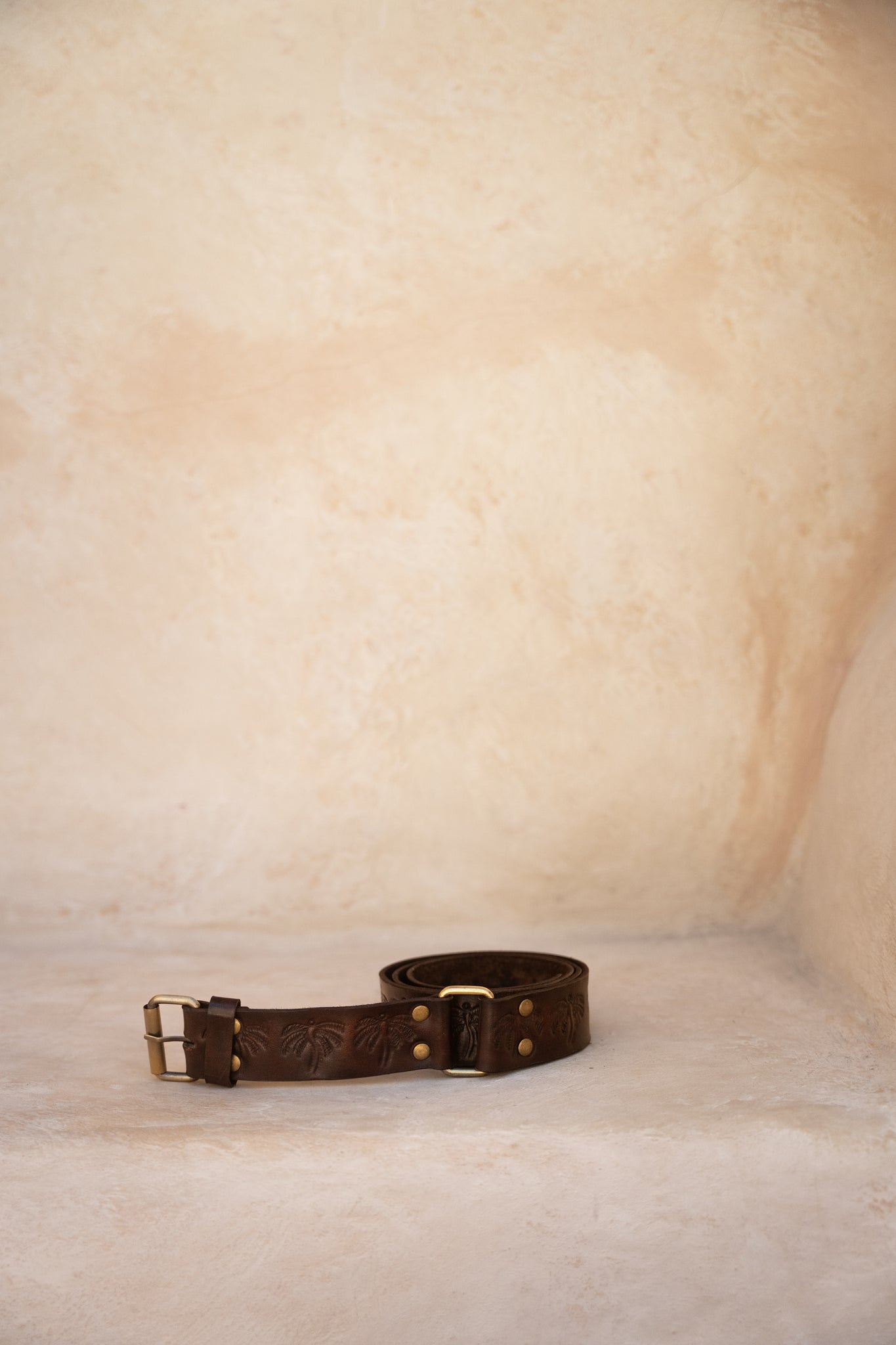 Palms Belt features hand embossed Palm Tree design over the length of the belt.