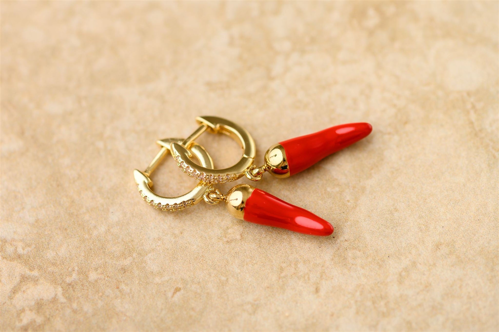 Add a little spice to your style with Oro! These charm earrings feature a golden chilli on a cubic zircon hoop, adding a playful twist to any outfit. Who says fashion can't be hot!