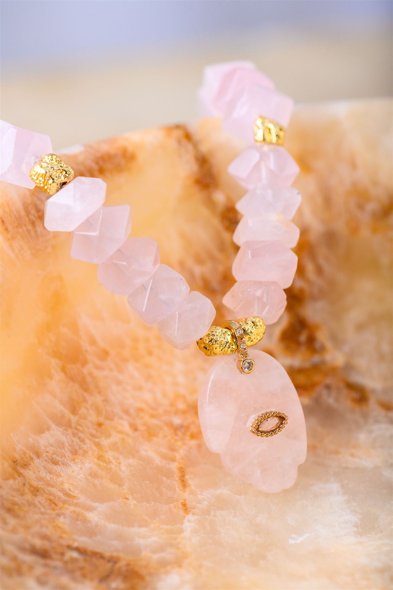- Gem-Grade Rose Quartz & Hamsa Charm