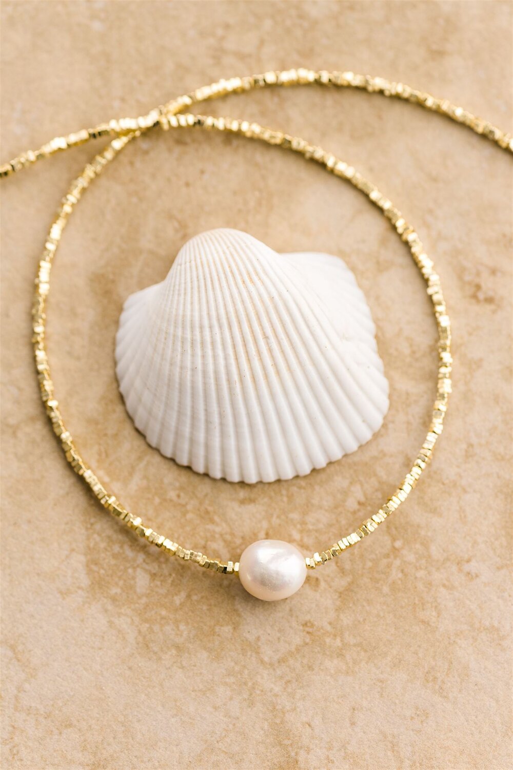 A delicate crushed gold bracelet featuring the oceans purest pearl.