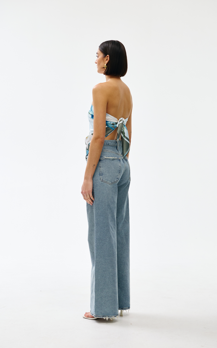 Versatile and eye-catching, the Sorrento Scarf in Portofino is designed to be worn and utilised in many ways. This scarf can be styled as a bandeau top, knotted around the neck, wrapped as a headscarf, or tied effortlessly to your handbag.