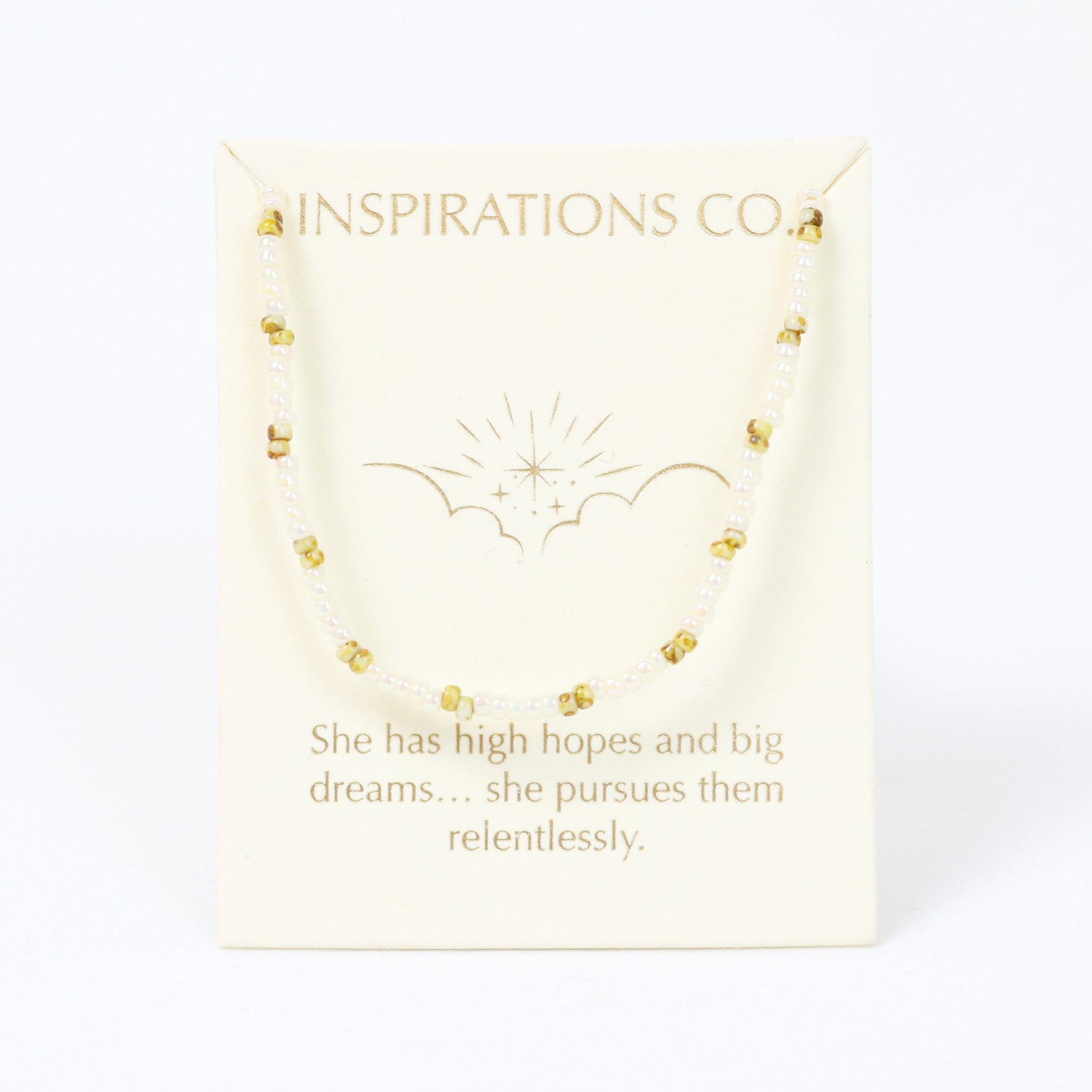 Made with Japanese glass beads and featuring a tarnish free Stainless Steel adjuster chain our Inspiration Necklaces come in an assortment of colours and designs.