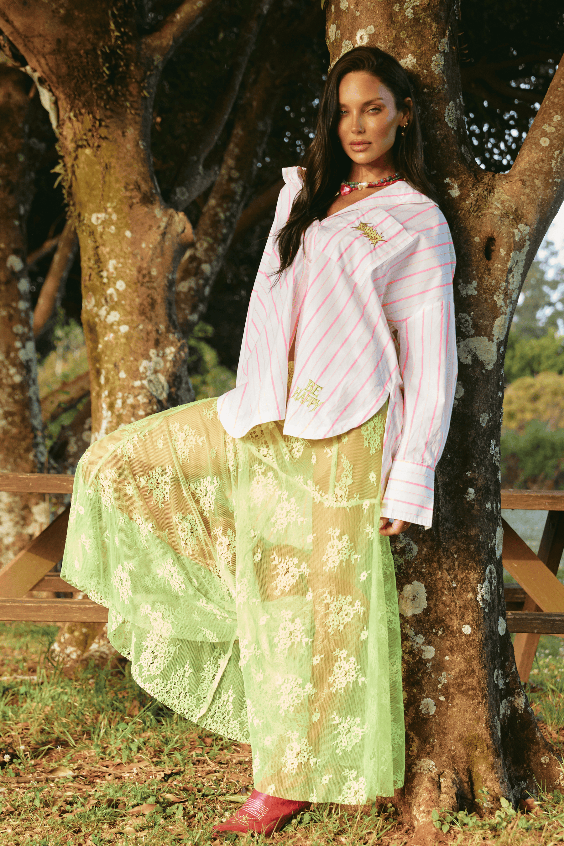 The skirts delicate embroidery gives it a dreamy, feminine edge, while the bold colour brings the fun. Style it with an oversized Sabbi shirt or your fave cowboy boots and take her from festival fields to seaside cocktails with ease.
