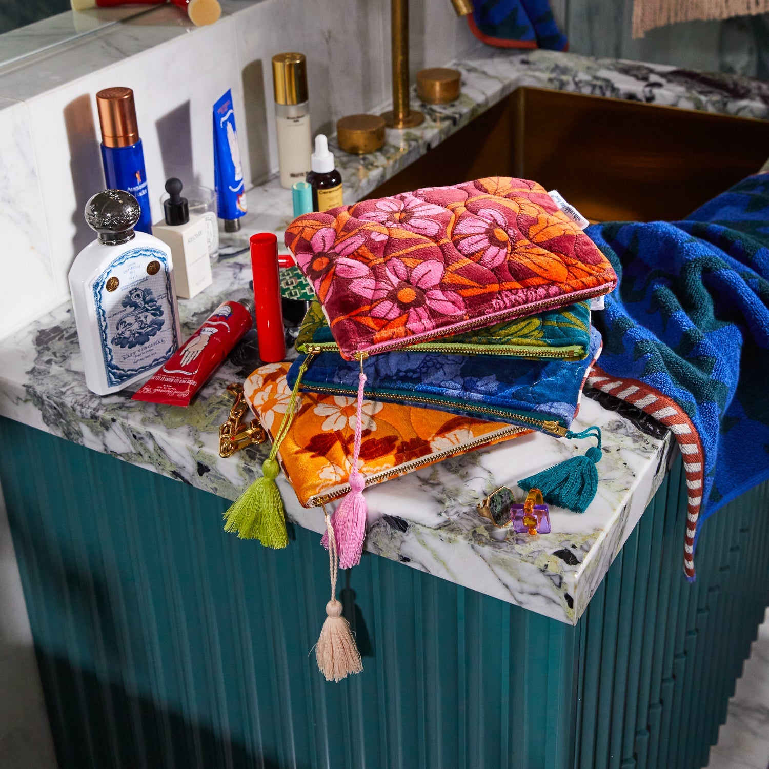 “Taking inspiration from a lush wildflower meadow, this textural pouch is the perfect size for stashing all your bits and bobs on the go. Super-soft velvet, a gorgeous floral motif, striped piping, and the playful tassel and zip closure will have you reaching for your new favourite accessory time and time again.” – Phoebe’s Style Notes