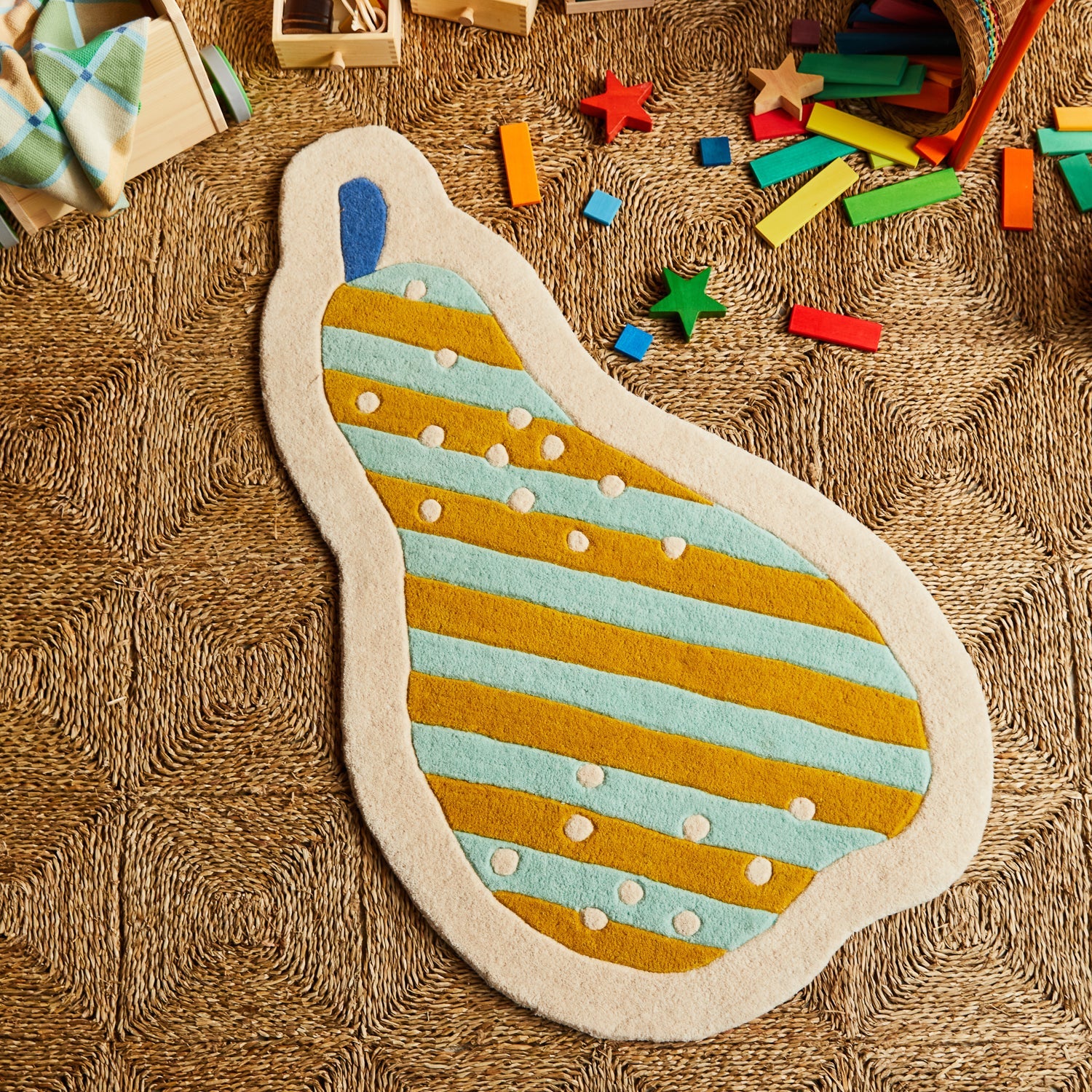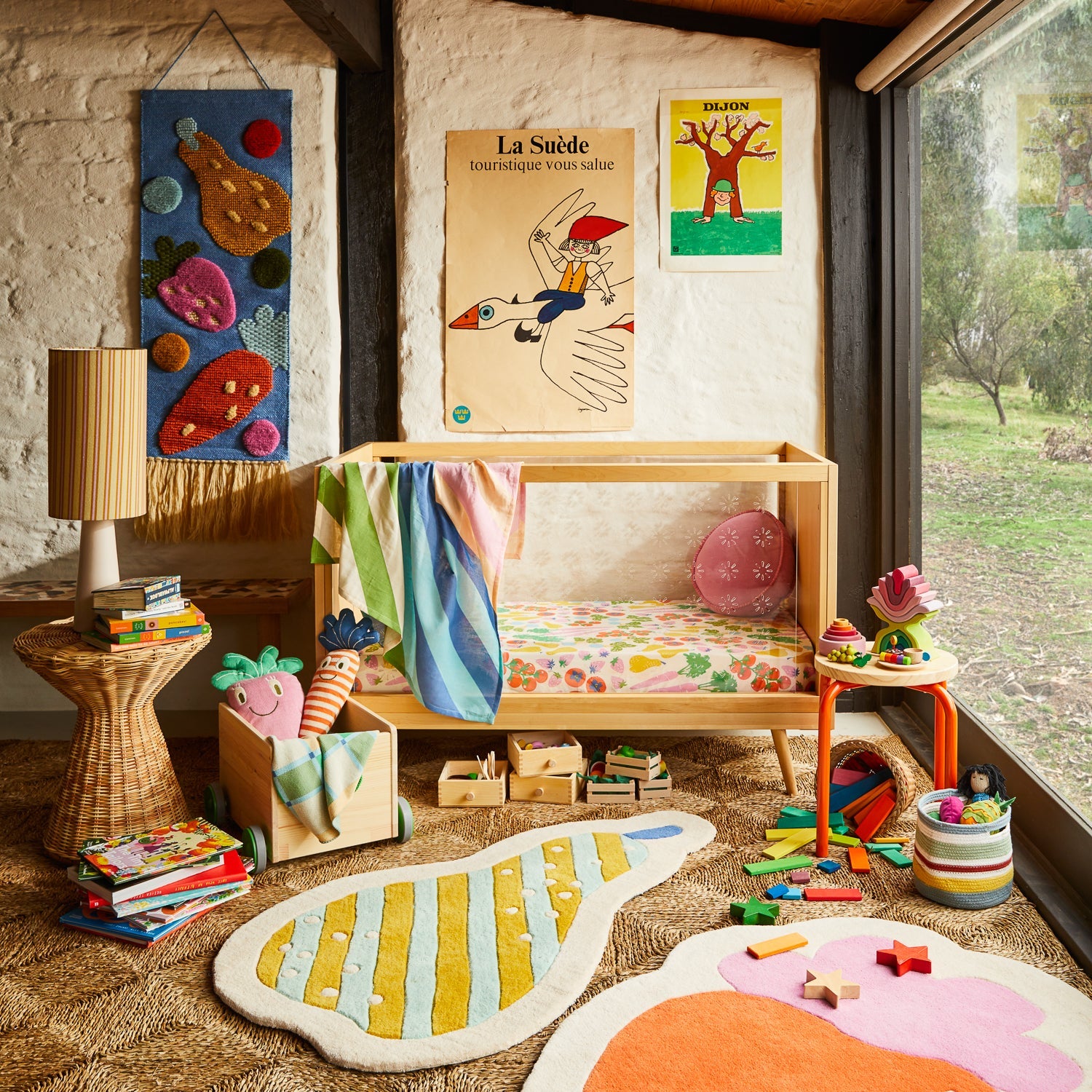 “Encourage big imaginations and a love of nature with the playful design of our Calery Pear Rug. Rug. Its plush, hand-crafted texture feels soft and gentle under little feet, while its bold stripes and vibrant, unexpected colours pop with personality.” – Phoebe’s Style Notes