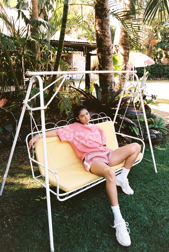 Meet the Troppo Tee — Sun faded, coral red, feels like it’s been laying in the sun all summer. Wrapped in yardage artwork of hibiscus, dolphins, stars, and Sea Street’s “Always On Holiday” spirit, this one’s made for chasing the sun.
