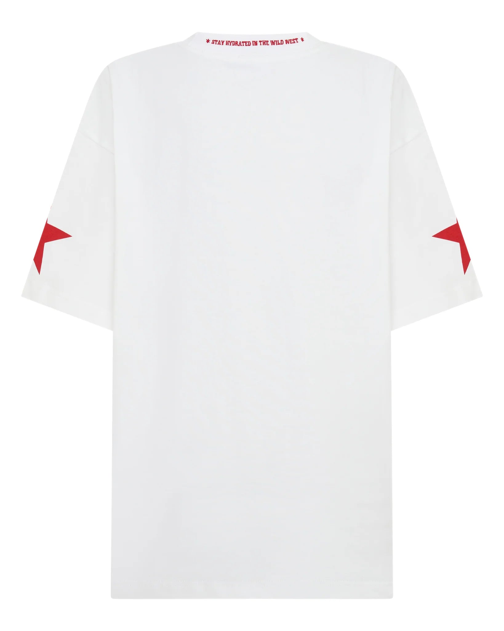 Embrace the Wild West with the Cowboy Water Tee. Inspired by our bestselling fragrance, this unisex tee features a bold white and red Cowboy Water logo, stars on the sleeves, and the embroidered slogan "Keep Hydrated in the Wild West" stitched in vibrant red on the collar. Rugged, stylish, and effortlessly iconic.