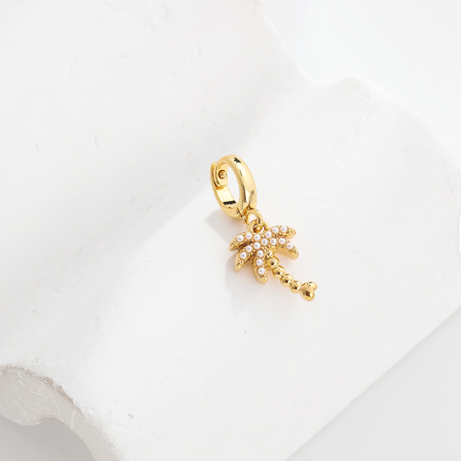 Freshwater pearls, enamel heart and cherries, palm tree, starfish, zirconia cross, crab, and pearl