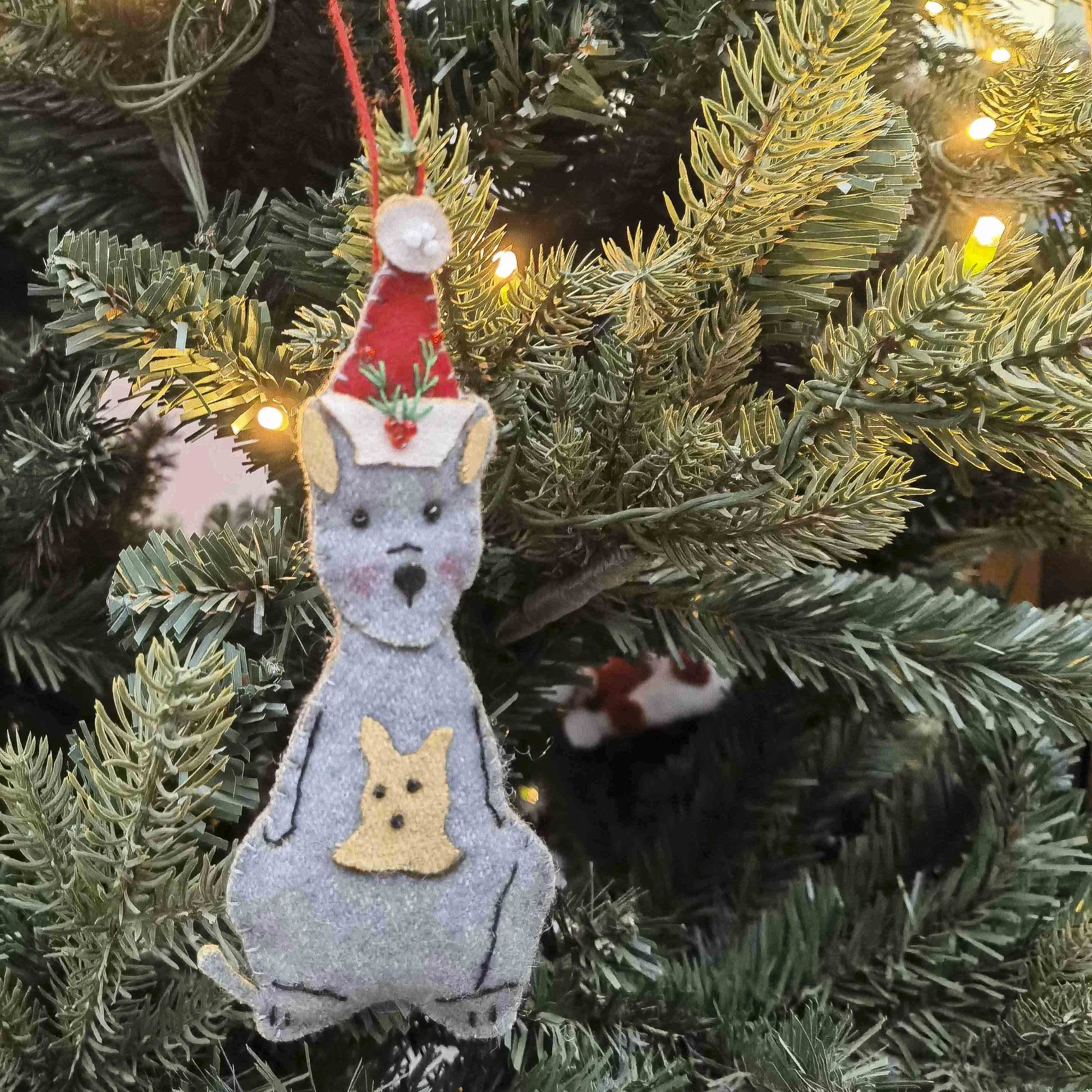 Christmas Kangeroo Fabric Hanging Decoration Grey & Red 12cm