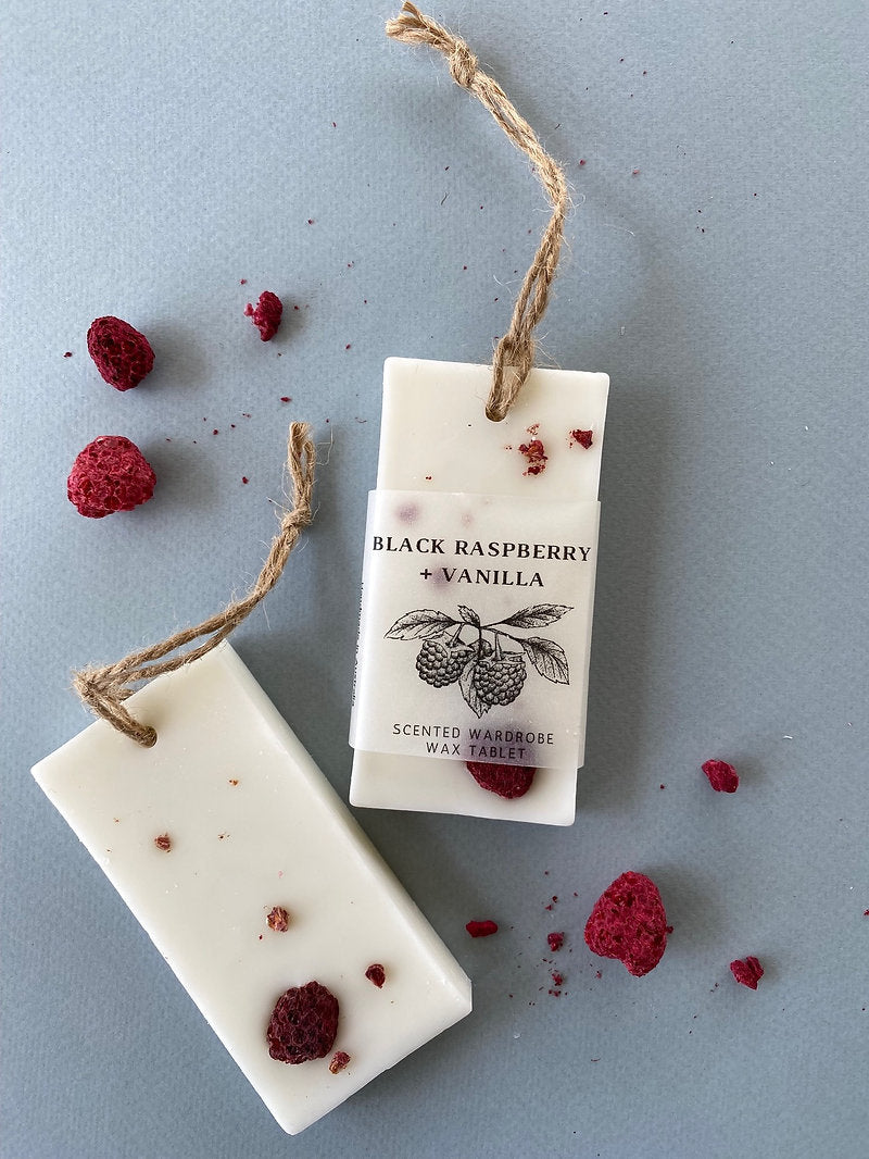 Soy wax scented wardrobe tablet measuring 5cm x 10cm and 50g.